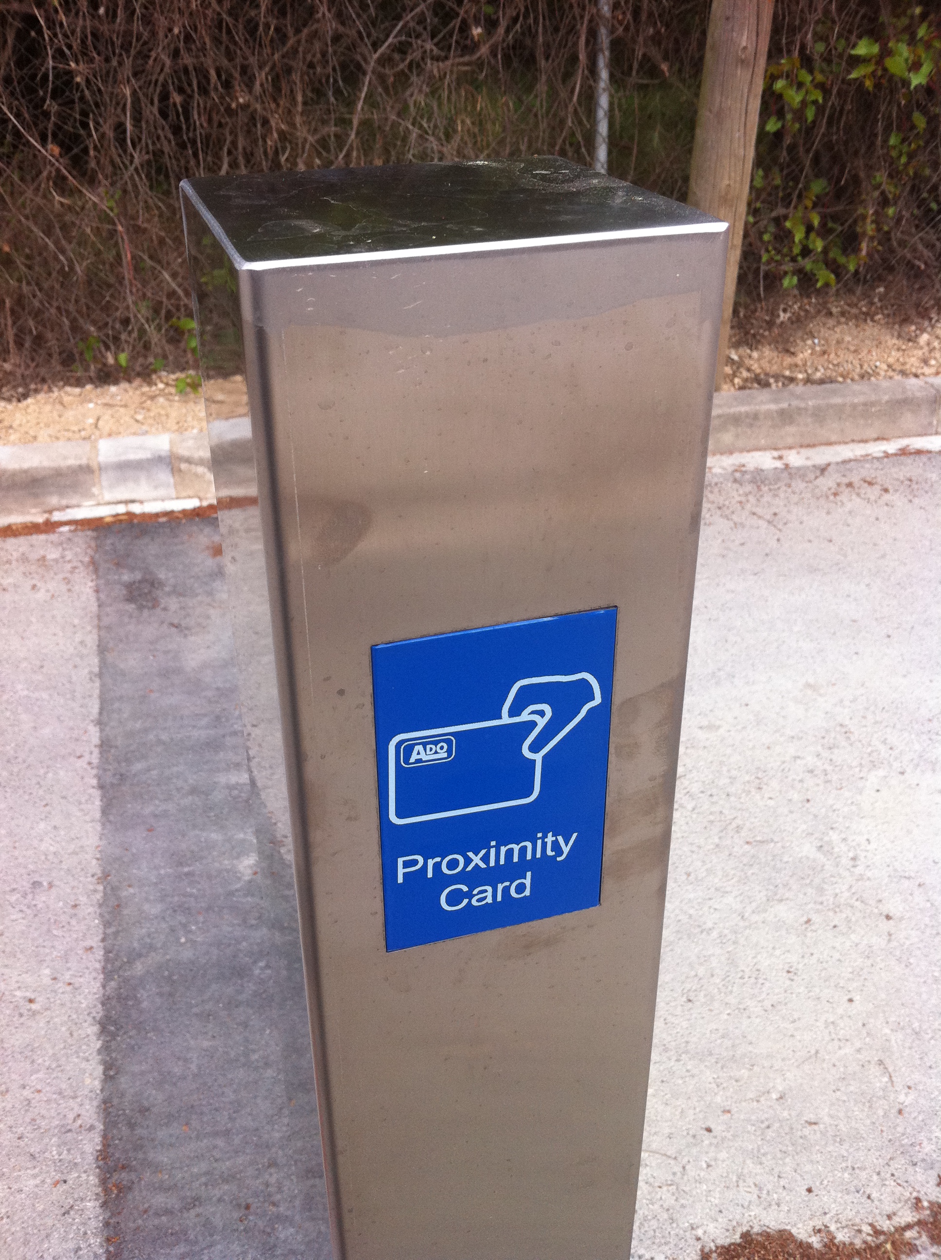 Proximiti Card “Apropar la tergeta per obrir-se la pilona i el semàfor en verd” (Foto: bellaterra.cat)