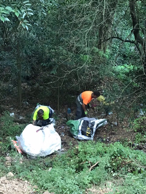 Operaris fent la recollida de brossa del barranc del Camí| BELLATERRA.CAT
