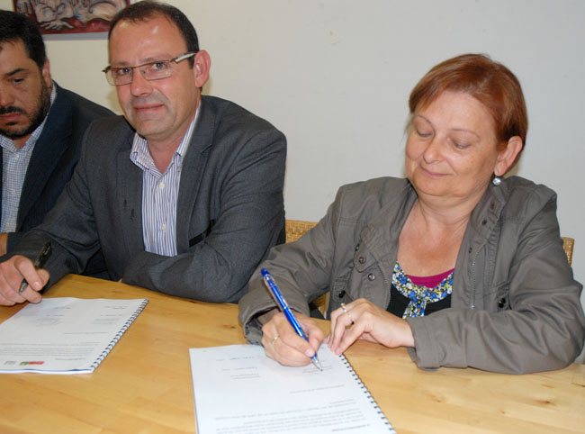 Carme Cardona i Alfons Escoda durant la signatura del programa de govern per Cerdanyola ( Foto: cerdanyola.info)