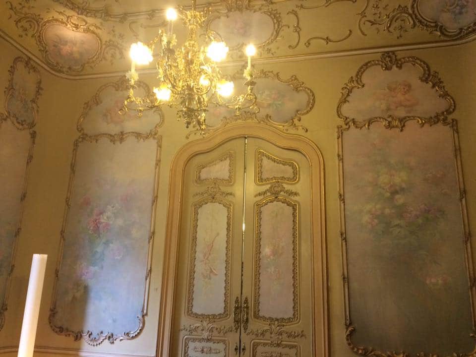 Al Saló de respecte situat a la façana d’Ausiàs Marc trobem el saló de visites. És d’estil neorococó, ja que la seva decoració ens recorda a la dels palaus francesos de el segle XVIII. Aquest canvi de decoració i aquesta recuperació d’estils i gustos de l’passat va ser molt habitual en aquesta època. És un espai que mostra riquesa i ostentació, amb la intenció de recordar els salons aristocràtics de la França de Versalles. El sòl de l’estada és geomètric, amb marqueteria de fusta de boix, bedoll i noguera, en tres colors. El saló també està dividit en dos espais, separats per un arc que descansa sobre columnes de marbre de Carrara amb capitells decorats amb motius vegetals i daurats.