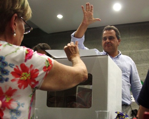 Un veí vota en la consulta sobre la independència de Bellaterra de l’any 2015, en què el sí es va imposar|