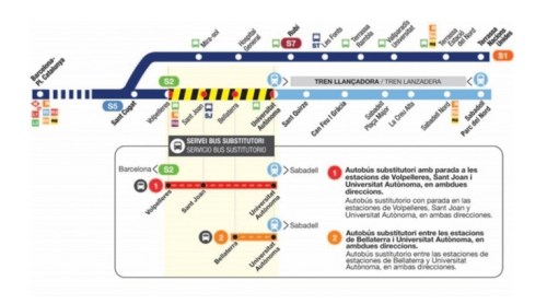 Com és habitual en aquests casos, FGC habilitarà un servei d’autobusos substitutoris per carretera per garantir la mobilitat dels usuaris en el tram entre Volpelleres i Universitat Autònoma de la línia S2. El servei entre les estacions de Pl. Catalunya i Volpelleres serà l’habitual i els trens circularan segons l’horari previst. Entre les estacions d’Universitat Autònoma i Sabadell Parc del Nord el servei també serà l’habitual, excepte el tren amb sortida a les 22.49h d’Universitat Autònoma, que sortirà a les 22.52h. Aquestes actuacions s’emmarquen dins el constant procés de manteniment i renovació dels diferents equipaments, instal·lacions i localitzacions que duu a terme FGC per poder seguir donant un servei de qualitat als seus usuaris.