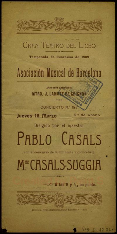 (c) AHCB. Programa de mà del Gran Teatre del Liceu. 18 de març de 1909 📷 Col·lecció Ephemera