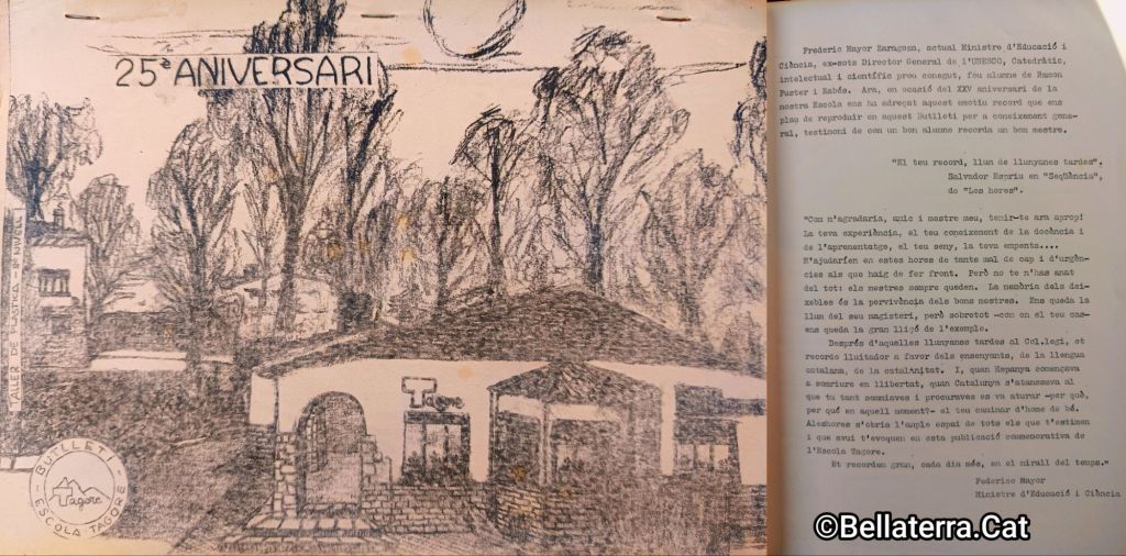 Miro enrera i sento vius i presents tots els professors que han passat per l’Escola, tot el personal col.laborador i tots els nois i noies que, grans ja, seguiran sent, per sempre “els meus nois i noies del Tagore”!