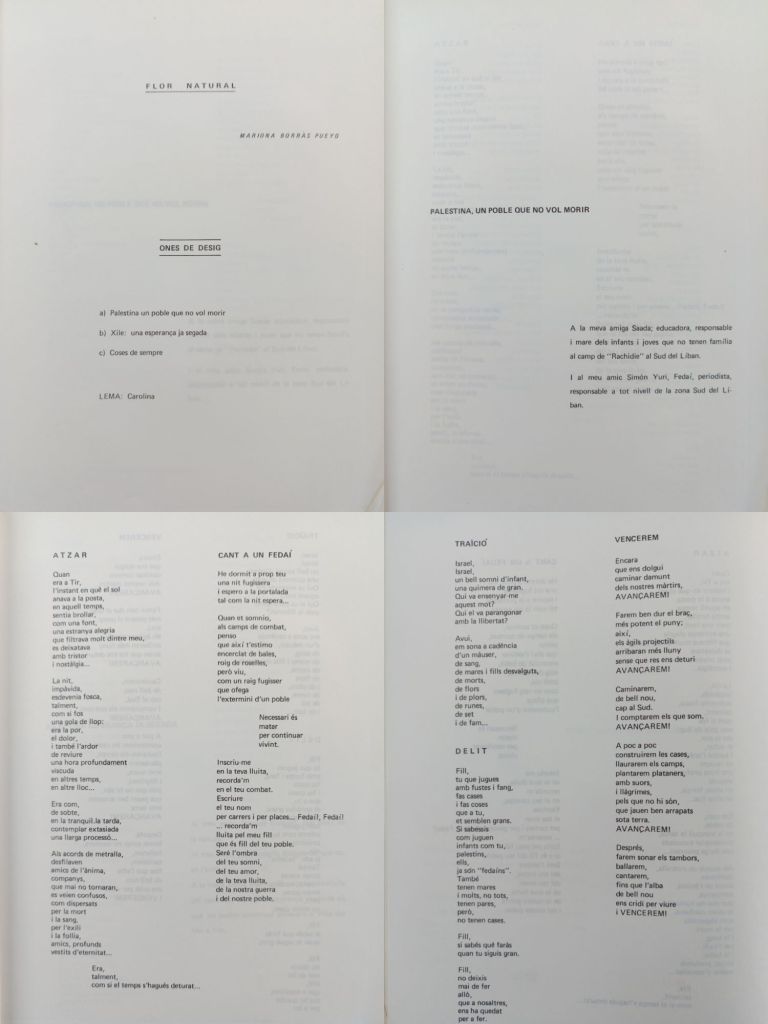 “L’Escola de Tagore de Bellaterra va concedir la Flor Natural dels Jocs Florals1980 a Mariona Borràs Pueyo, pel seu treball “Palestina, un poble que no vol morir”