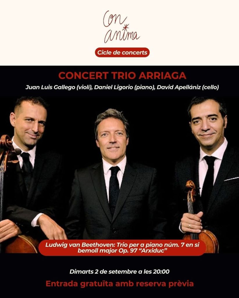 LLUIS TORRES✍️El Trio Arriaga va interpretar ahir, al Conservatori El Musical de Bellaterra, ple de gom a gom, el Trio “Arxiduc” op. 97. de Beethoven, un concert que obre la Festa Major de Bellaterra, i que coincideix amb l’aniversari de Montse Roig, creadora i ànima d’aquest Conservatori Professional de Música de Bellaterra.