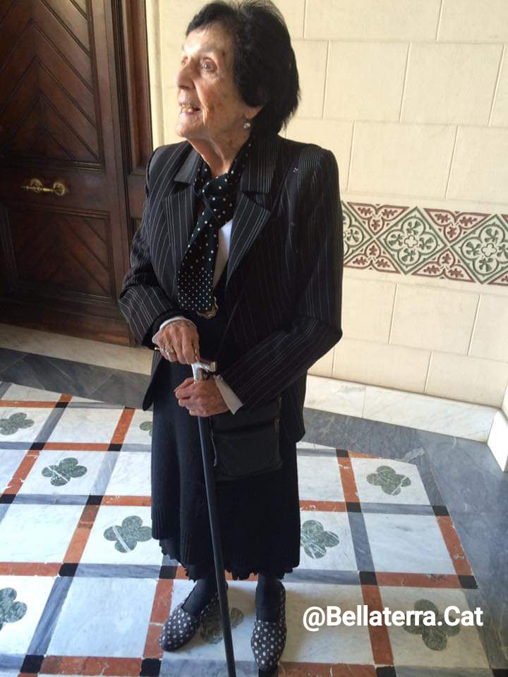Amèlia Riera a l’entrada de casa seva de Placa Catalunya de Barcelona
