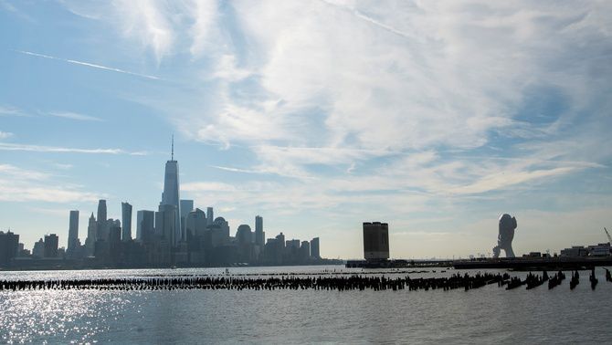 El cap està situat en un passeig marítim de la zona de Newport, a Nova Jersey, i mira cap als inconfusibles gratacels de la Gran Poma, amb l’icònic Empire State Building o la Torre de la Llibertat a la seva vista.