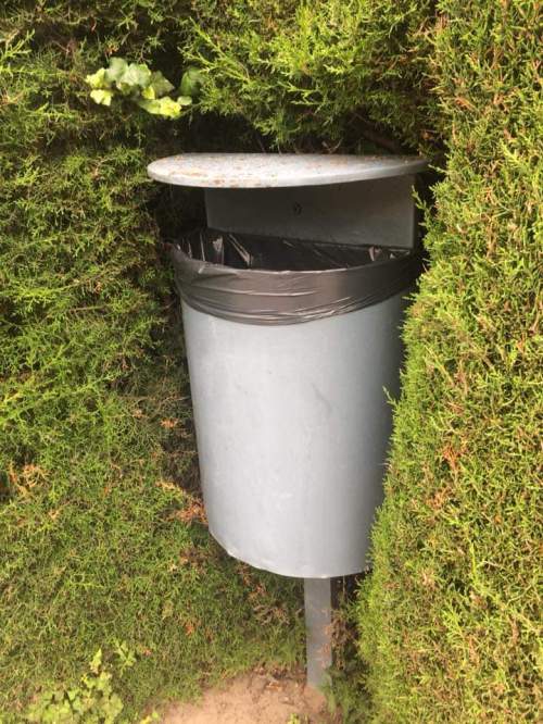 Paperera entre natura a l’estació de Bellaterra dels FGC|ARXIU BELLATERRA.CAT
