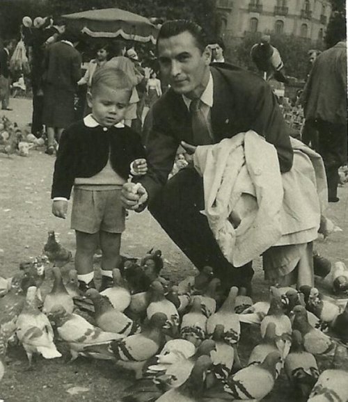 Nicolae Szegedi, primer jugador romanès del FC Barcelona amb el seu fill Andrés Szegedi a la Plaça Catalunya|ARXIU FAMÍLIA SZEGEDI