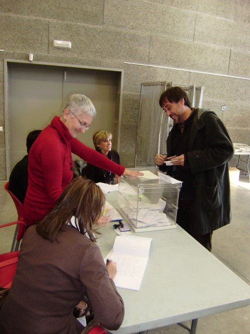 El bellaterrenc Joan Manuel Tresserras i Gaju (Conseller de Cultura de la Generalitat de Catalunya) vota al Centre Cívic de Bellaterra