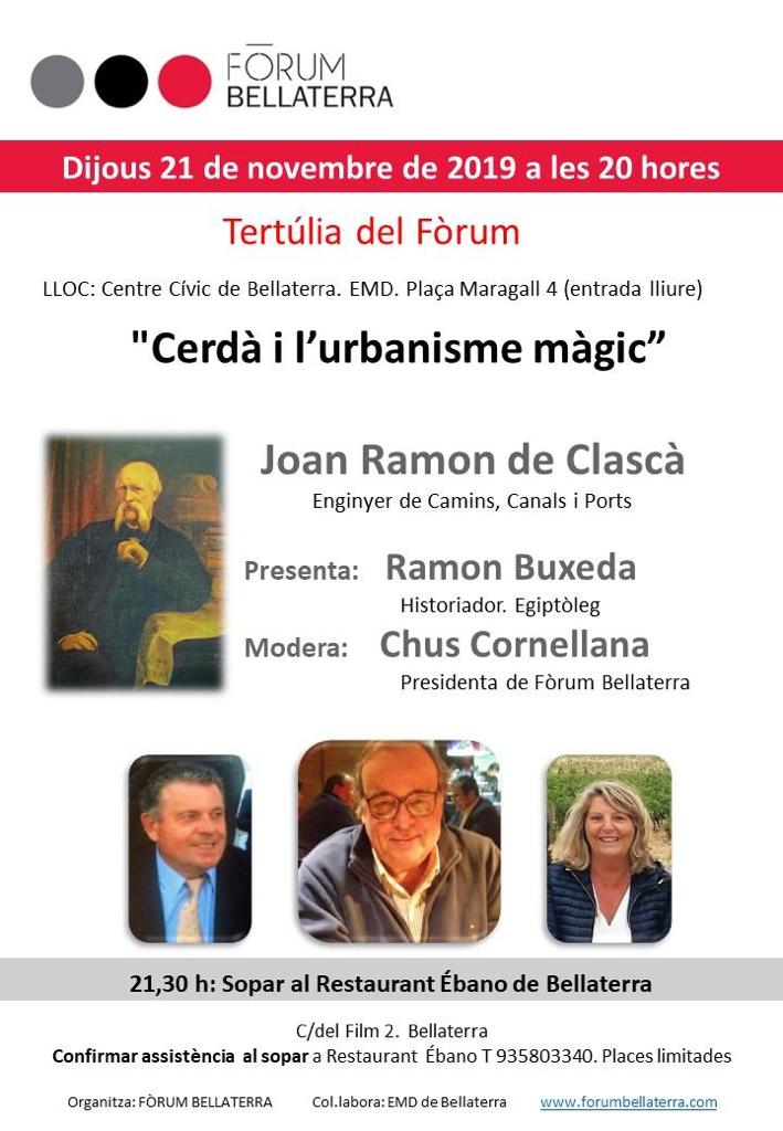 Posted in Bellaterra, tagged Chus Cornellana, Fòrum Bellaterra, Ildefons Cerdà, Joan Ramon Clascà, Ramon Buxeda on 22 Novembre 2019|