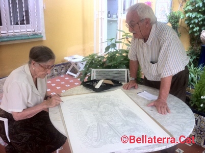Aurora Altisent signant un dibuix del Palau de la Música Catalana al bellaterrenc Valeri Novell