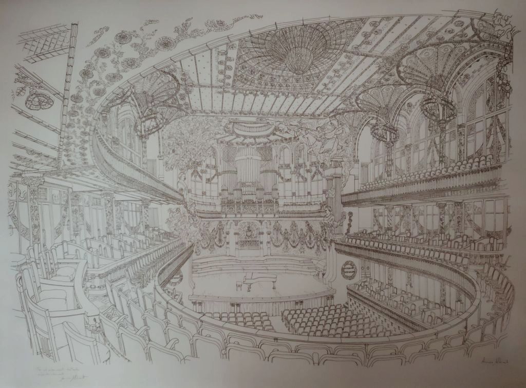 Palau de la Música Catalana, un dibuix dedicat als bellaterrencs Angi i Francesc 📷 BELLATERRA.CAT