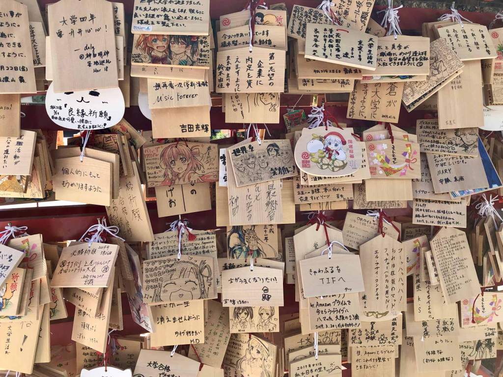 Les tauletes Ema (絵馬, “dibuix de cavall“) són un petit tros de fusta en què els sintoistes escriuen les seves oracions i benediccions perquè els déus puguin llegir-les després de penjar-les al santuari.