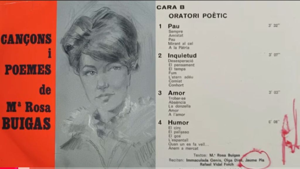 Vinil Cançons i Poemes de Maria Rosa Buïgas (1973), signat per Jaume Pla