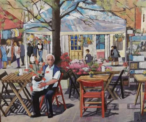Vida pròpia, però també vida col·lectiva és la que trobem en els quadres que ara presenta Katerina Alavedra-Duchoslav, residenciada des de fa anys a Sant Cugat per raons familiars, que sap evocar amb la seva obra arrelada en ciutats del centre d’Europa representades per cafès, terrats i músiques al carrer, un sentit constructiu de vida en comú reivindicador del respecte que cada persona mereix per ella mateixa i del proïsme.
