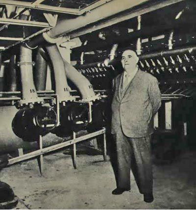 Carles Buïgas i Sans a la sala de màquines de la Font de Montjuïc, 1929 📷 CEDIDA