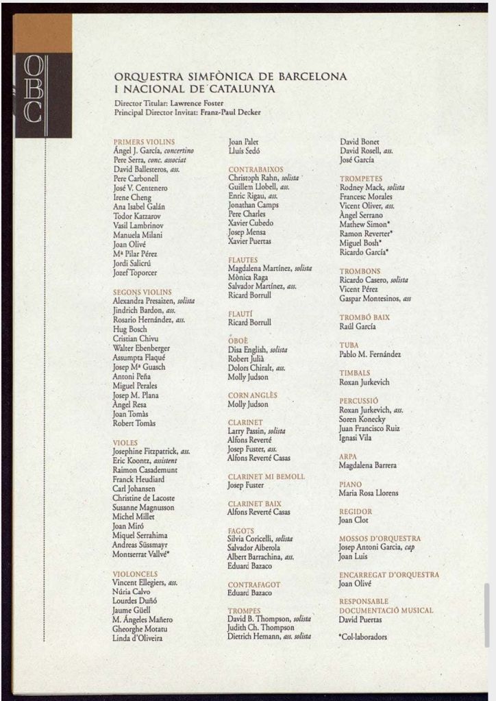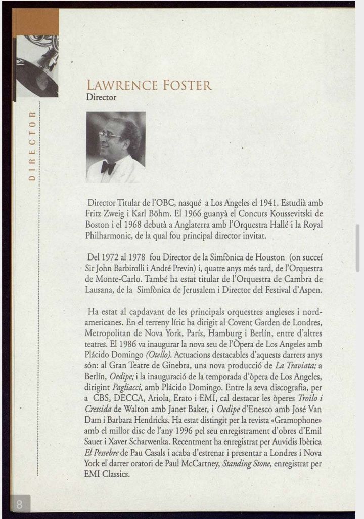 Programa de mà del Concert de l’OBC dirigida per Lawrence Foster, el 4 i 5 d’abril de 1978, al Palau de la Música Catalana: