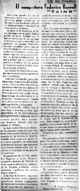 -El milicià no és Federico Borrell García. Aquest anarquista mor a Cerro Muriano, a les 16,00h del 5 de setembre de 1936.