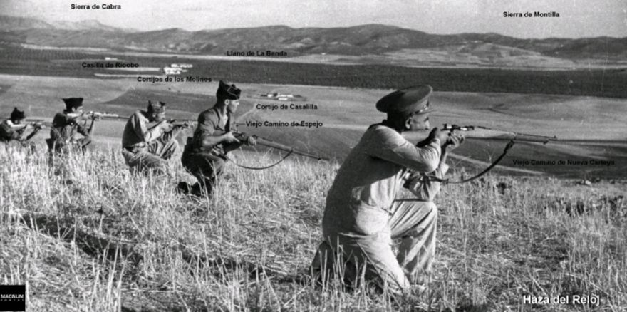 Al SO, la localitat veïna de Montilla es trobava sota el control dels nacionals des de pràcticament el començament de la guerra civil. Amb gairebé tota probabilitat, els milicians que apareixen a la foto A, dirigeixen les seves mirades cap a aquest poble del camp.