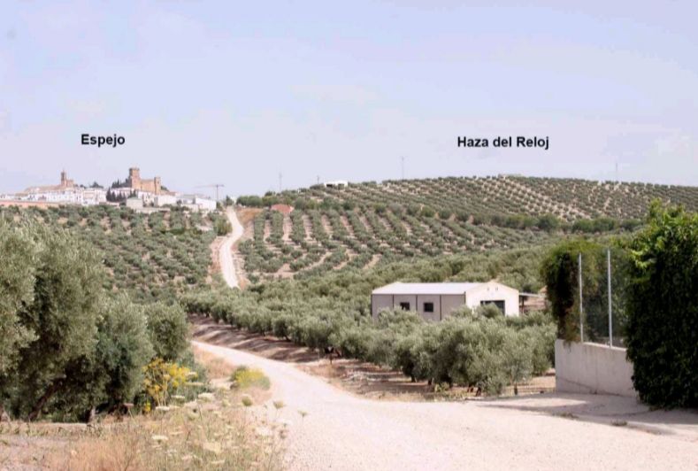 Lloc des del qual hem centrat la nostra investigació. Per les seves característiques, La Haza del Reloj o Cota 405, devia ser un enclavament estratègic molt important en la defensa d’Espejo i primera línia de front entre el 18 de juliol i el 25 de setembre de 1936. Des d’aquest turó dominant, les tropes lleials controlarien Montilla i les defenses estratègiques enemigues. En el vol americà de 1956, aquesta era ja apareix sembrada de cereal i completament deshabitada.