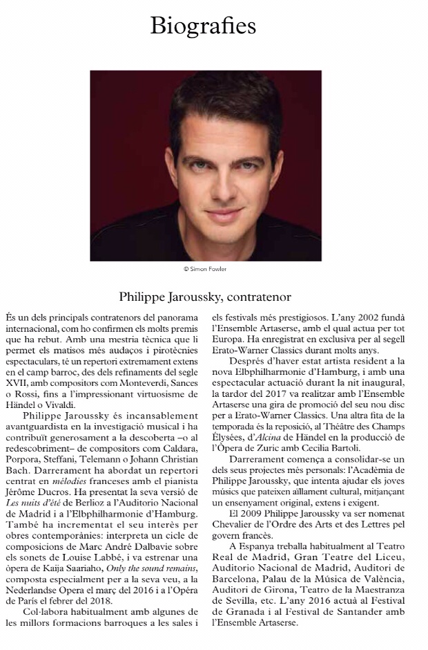 Aquesta nit Bellaterra té l’oportunitat d’assistir al gran concert de Philippe Jaroussky, acompanyat del Cor de Cambra del Palau. Es tracte del principal contratenor a nivel internacional. El concert començarà a les 20:30 al Palau de la Música Catalana.