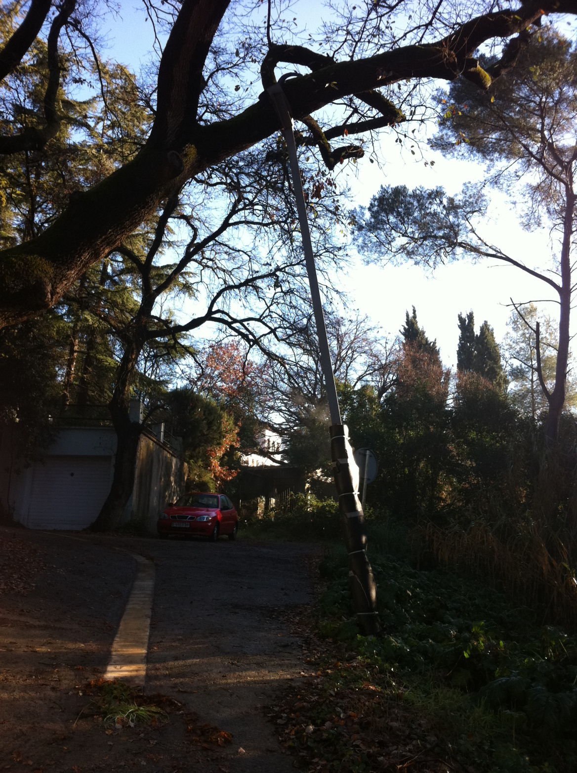 També ho vam protegir amb uns 3 mts d’escuma dura envoltant la viga, no fos que si baixés algun cicliste despistat, no agafés correctament la curva i parés a fer una migdiada obligatòria sota el roure històric del Parc de la Font de la Bonaigua de Bellaterra (Vallès Occidental)