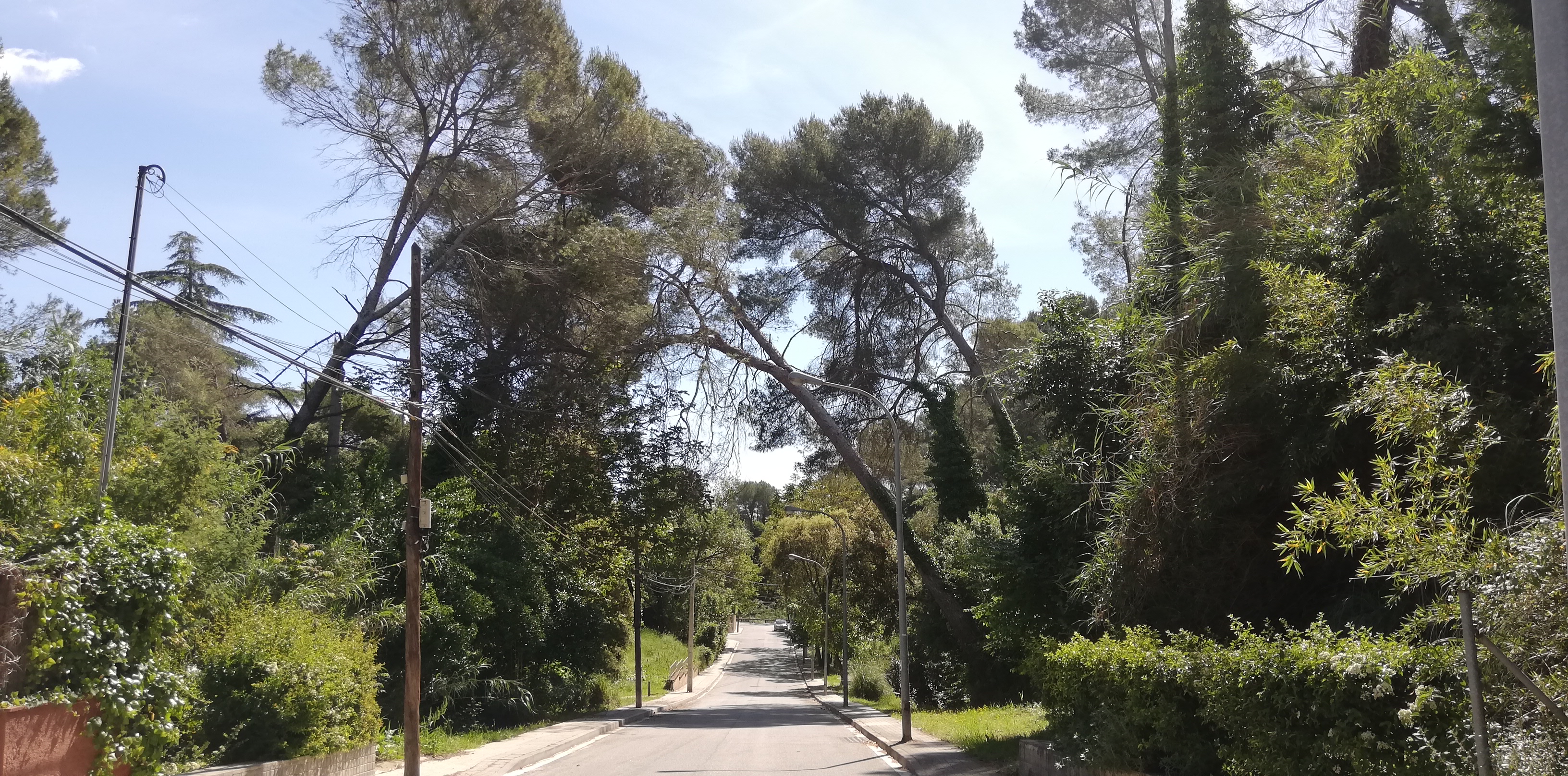 Perillós gran pi inclinat al carrer Mestre Nicolau|BELLATERRA. CAT
