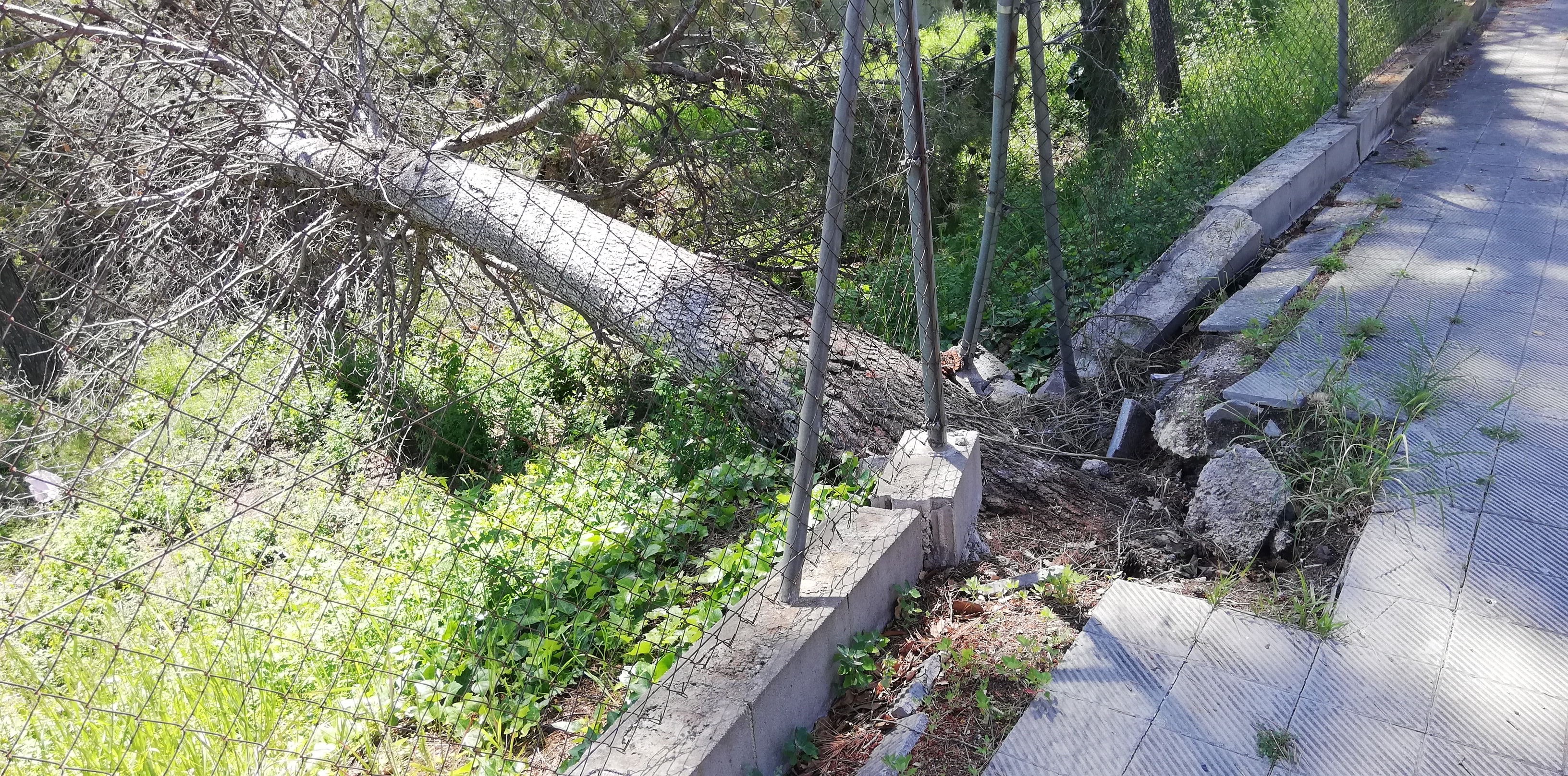 Per sort, aquest gran pi del Carrer Abat Oliba ha caigut sobre un tereny privat|BELLATERRA. CAT