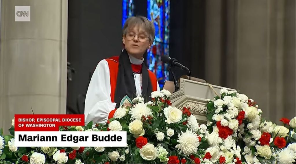 Gràcies, bisbe Budde. Si us plau, desafia públicament aquest perillós idiota a cada pas que pren mentre intenta destruir els Estats Units. Espero que no tingui èxit. Conec molts americans que saben el que és correcte. Però, malauradament, alguns que realment creuen en la bilis i mentides que Ilança constantment (Alan Warren)