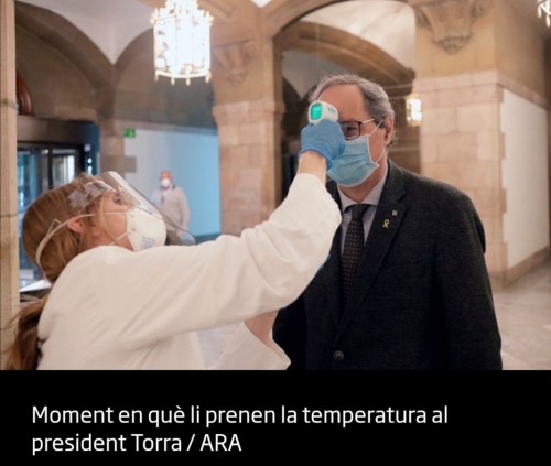 La imatge d’una infermera prenent la temperatura al president de la Generalitat, Quim Torra, a l’entrada de la cambra mostrava a la perfecció l’excepcionalitat del moment i confirmava que la crisi del coronavirus ho ha capgirat tot, no només les previsions econòmiques, que converteixen els pressupostos en paper mullat des del minut zero de la seva entrada en vigor, sinó fins i tot les dinàmiques polítiques. Ahir va ser el primer dia que el president va agrair el to de la cap de l’oposició, Lorena Roldán, de Ciutadans.