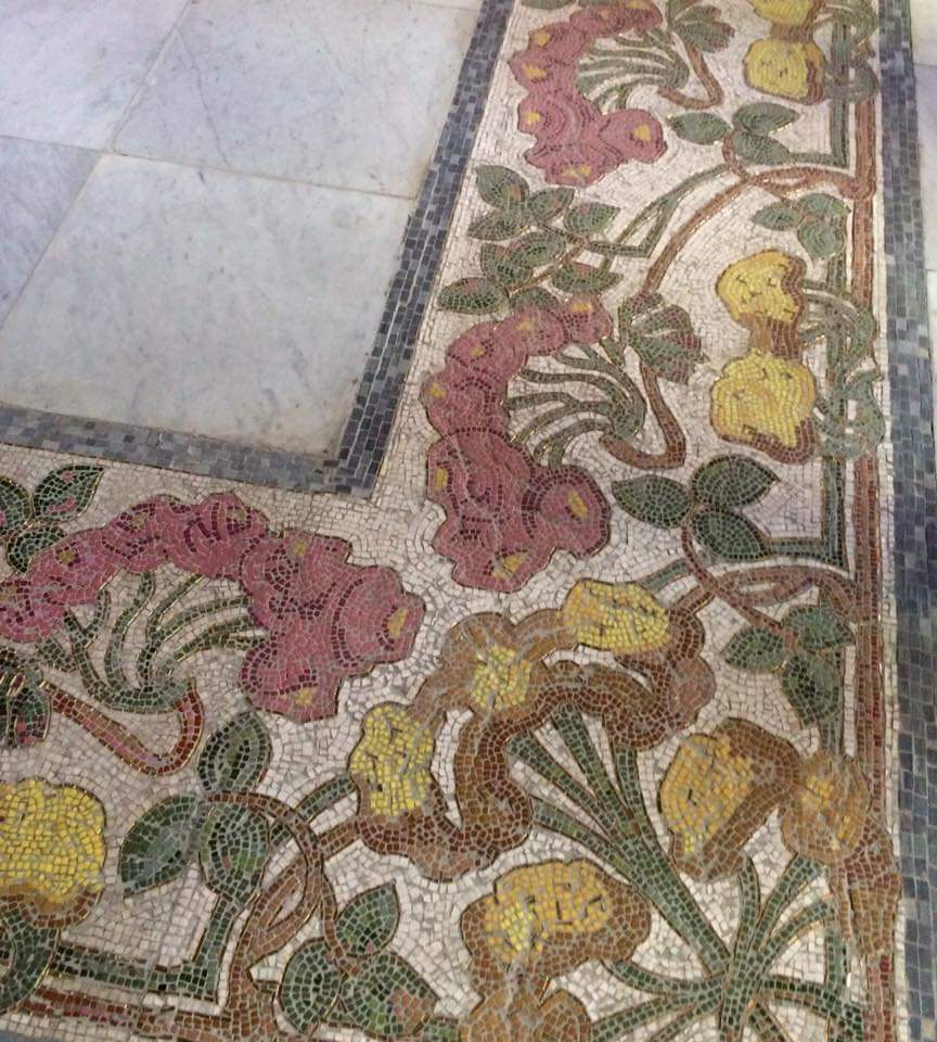 El saló que dona a l’interior d’illa, hi ha un munt d’elements modernistes. Crida l’atenció el mosaic del terra de Lluís Bru i Salelles (Ondara, País Valencià, 1868 – Barcelona, 1952), fou un mosaïcista i escenògraf modernista, considerat com el realitzador de tessel·les més important de la Barcelona del modernisme. Medalla d’Or a l’Exposició Internacional de les Arts Decoratives de París