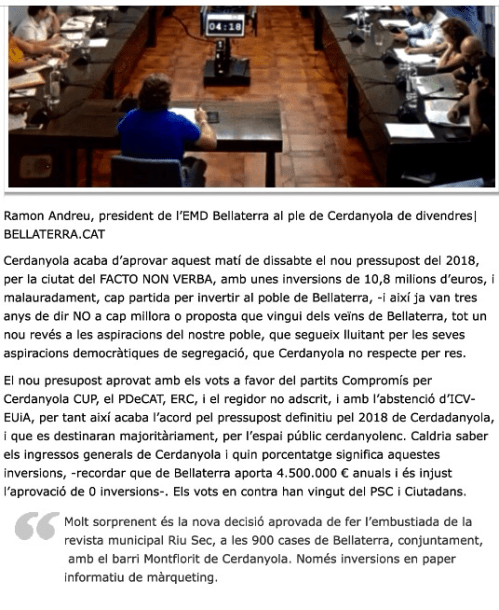 FACTO NON VERBA & PLUS “Riusec, única inversió de Cerdanyola a Bellaterra”