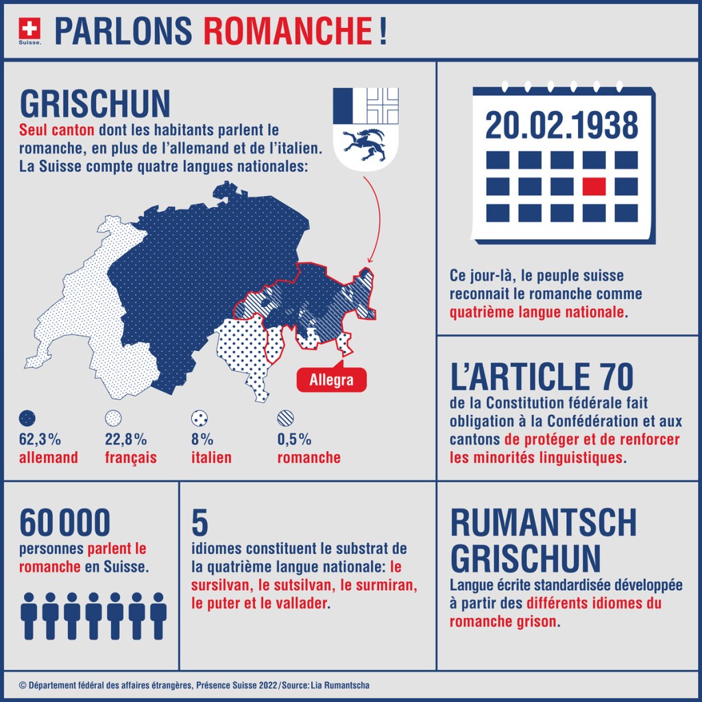 El cantó dels Grisons, el més gran i el menys poblat de Suïssa, és un món a part. Encara que s’anomena el país de les cent cinquanta valls, ningú no ha pensat mai en comptar les seves muntanyes n’hi ha massa; Compartimentada, dividida, partida, estava destinada a ser particularista en un país que ja no és senzill. Aquesta diversitat es fa evident en el fet que la seva població parla tres llengües: un dialecte alamànic, l’italià i el romanx, quarta llengua nacional de Suïssa, que s’ha conservat especialment a la vall superior del Rin i a la de l’Inn. El factor unificador dels Grisons es troba en la meravellosa bellesa de les seves muntanyes i valls, en la puresa del cel i en el pintoresc dels seus pobles.