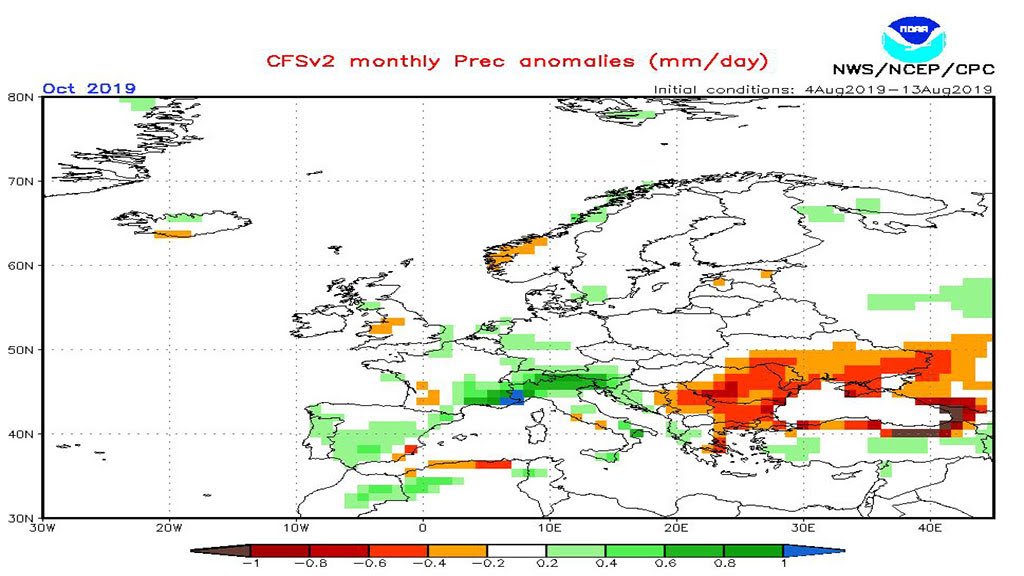 Els models estacionals ens indiquen que el setembre i l’octubre (especialment aquest últim) podrien ser més plujosos del que seria normal. Tot plegat un vist i no vist, perquè a més llarg termini hi ha indicis (segons els models de la NOAA) que la sequera continuarà.