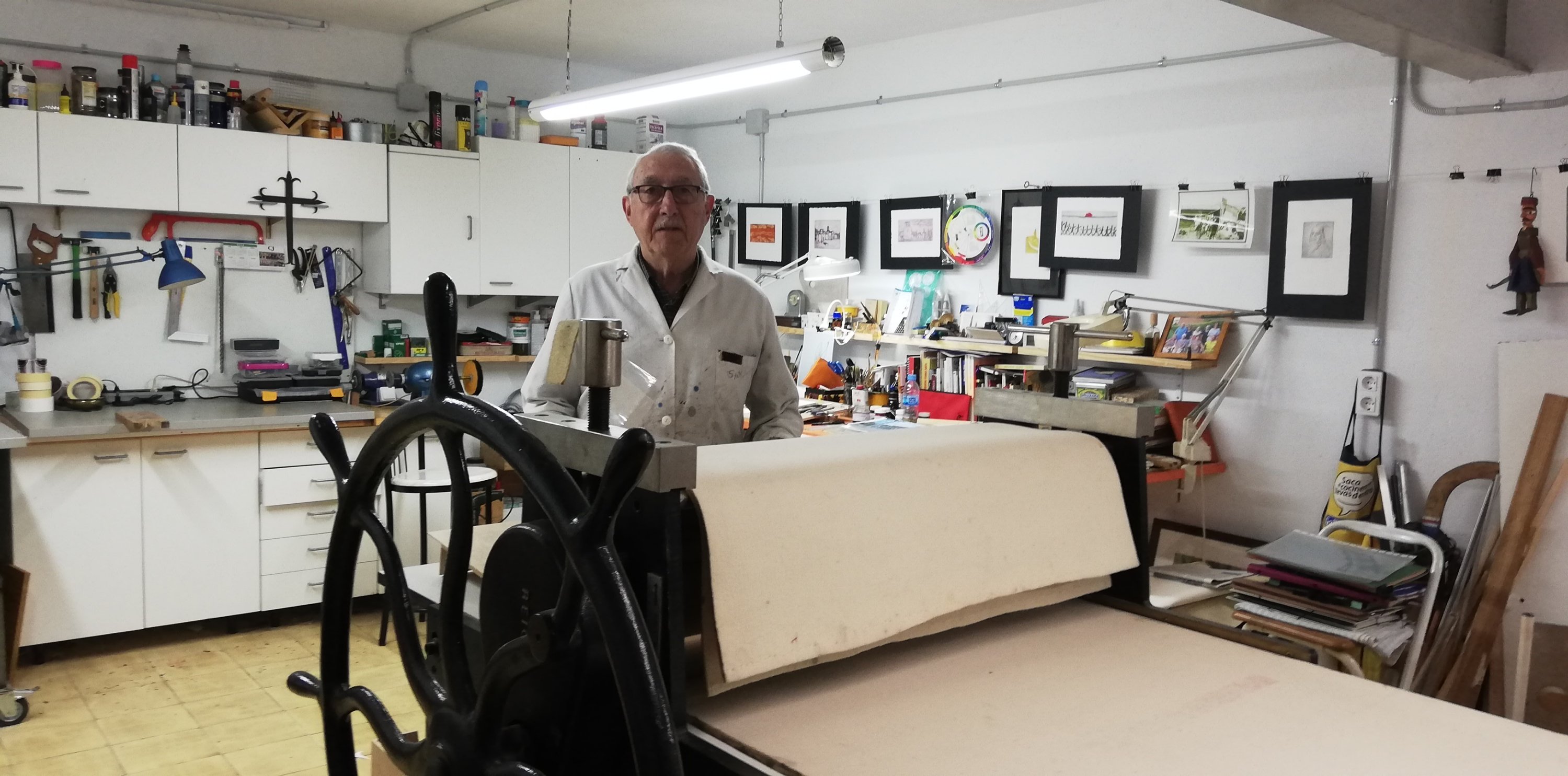 El bellaterrenc Santi Llorenç i Bosch, al seu taller artístic de gravat, al barri de Can Miró|BELLATERRA. CAT
