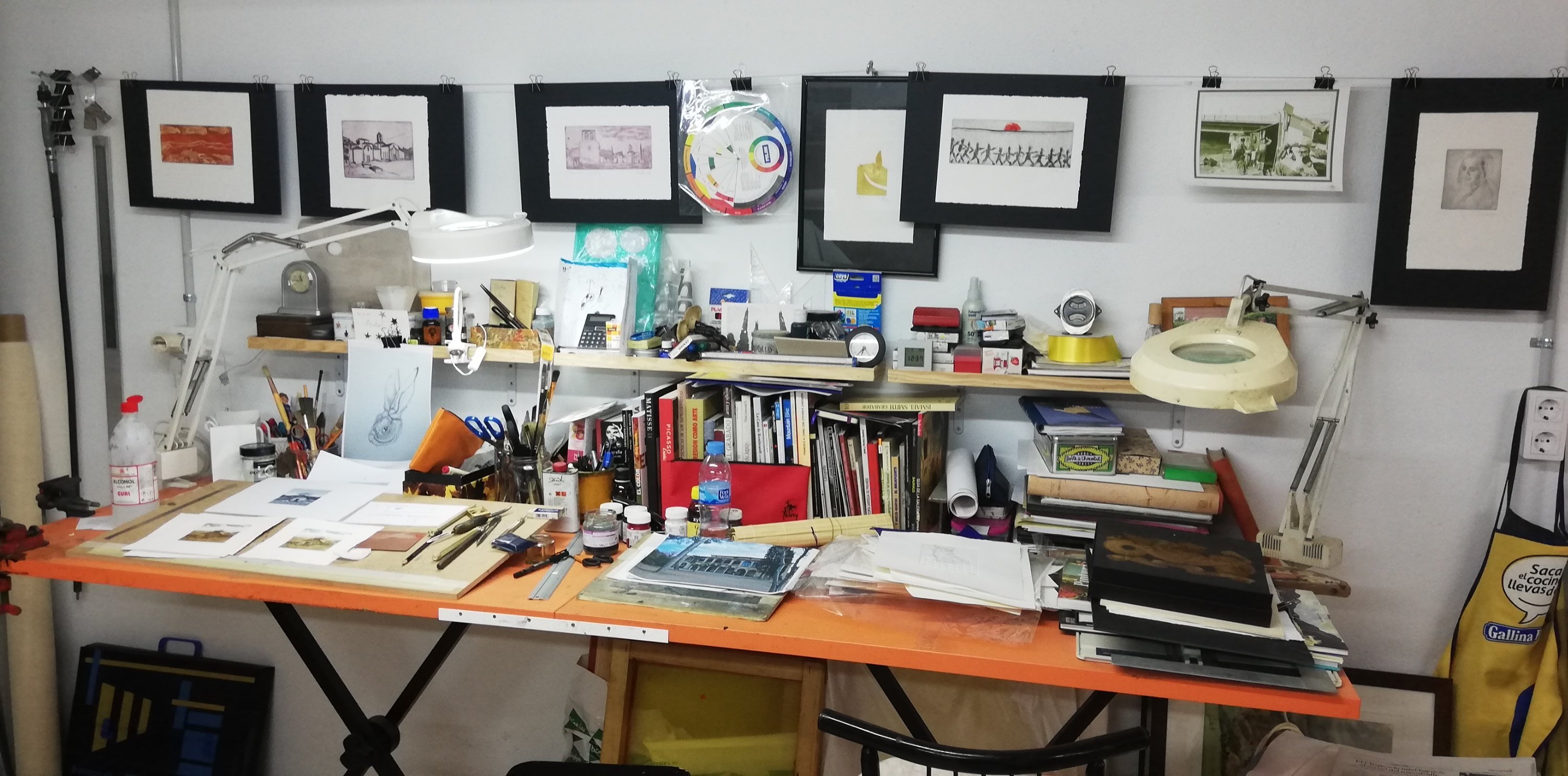 Taula del seu taller de gravat|BELLATERRA. CAT