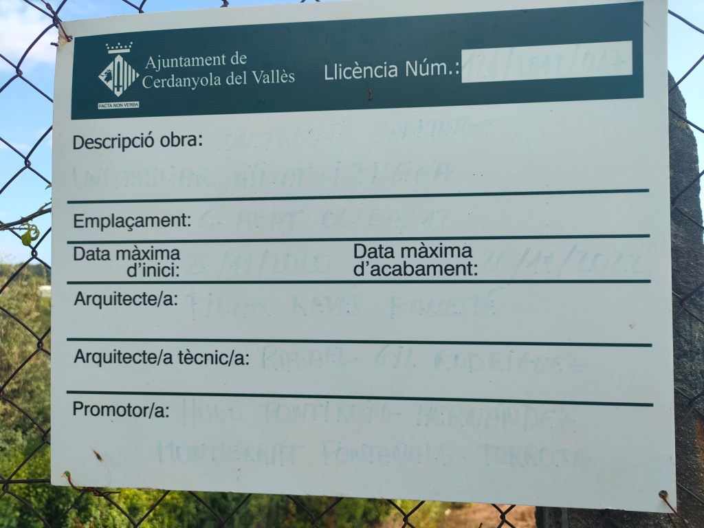 Placa de llicència d’obra esborrada al carrer Abat Oliba de Bellaterra|FOTO: BELLATERRA.CAT