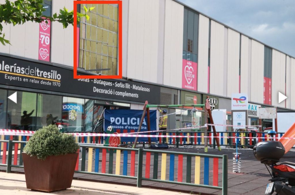 Marcat en vermell la peca de formigó caiguda al centre Comercial Via Sabadell📷 Albert Segura